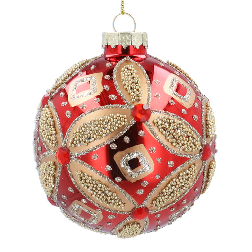 Red/Gold Beaded Trellis w Jewel Glass Bal