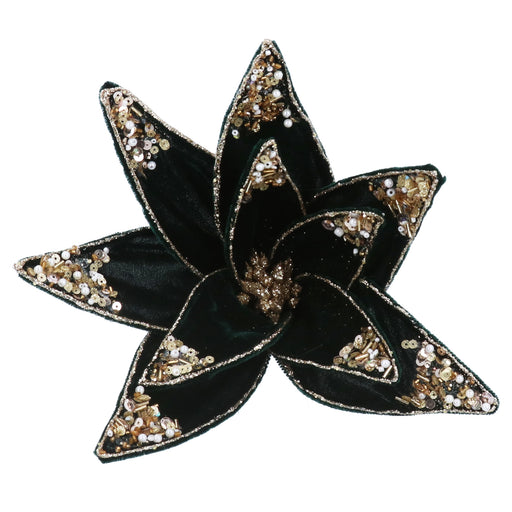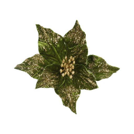 Pale Gold Fabric/Glitter Poinsettia Pick